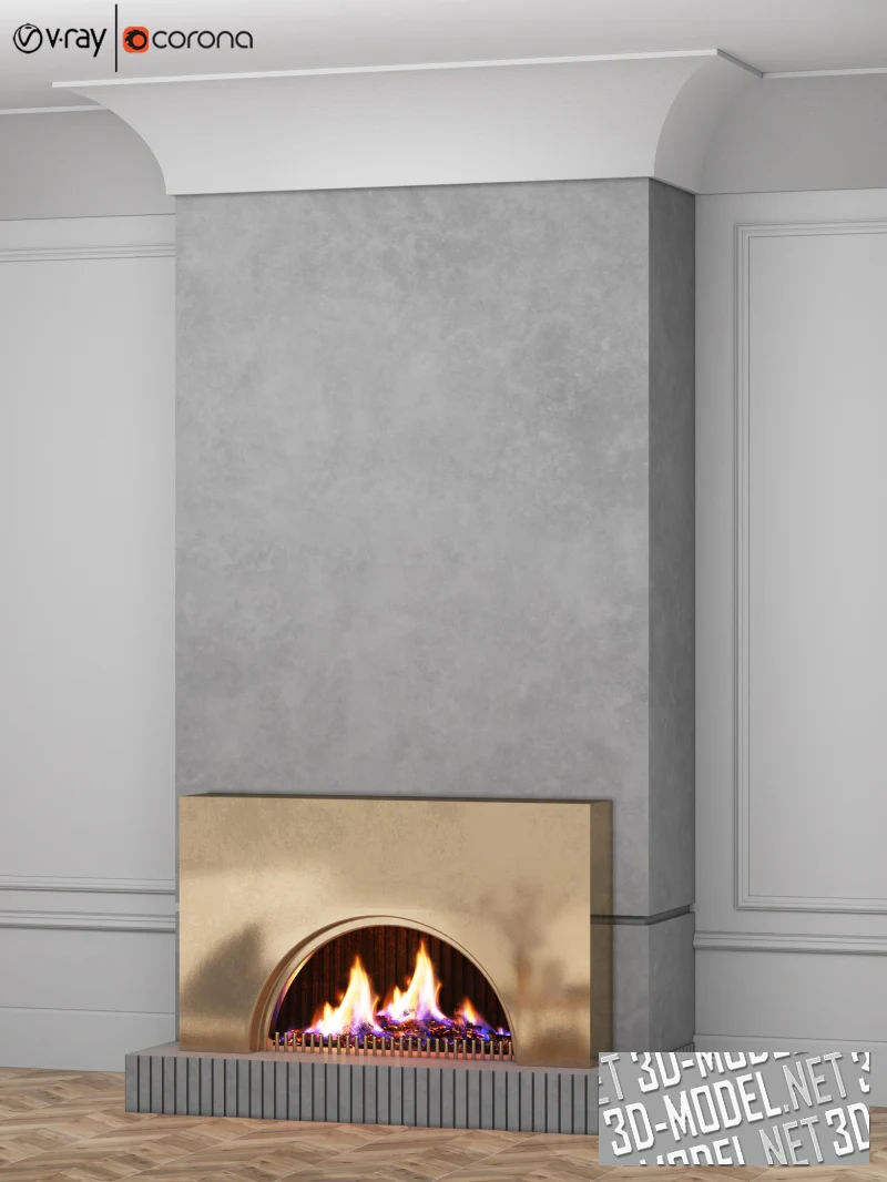 Камин в сером и золотистом цветах