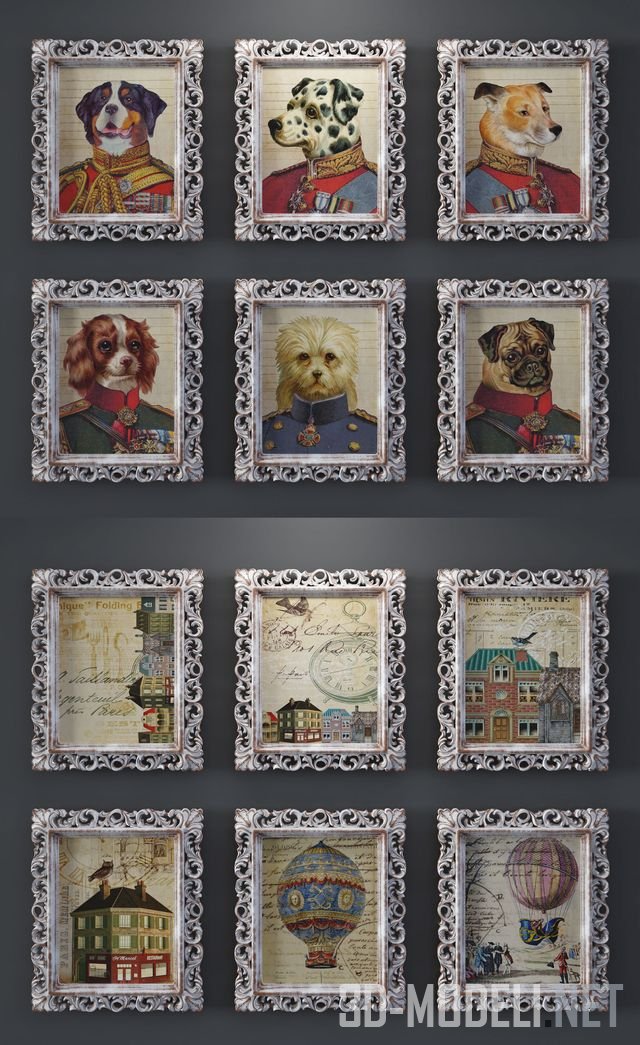 Изящные рамы Madeleine для классического пространства, с изображениями различных пород собак в «чинах», а также домиков и других милых сюжетов. Все текстуры собраны в архиве.