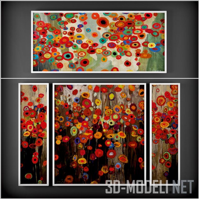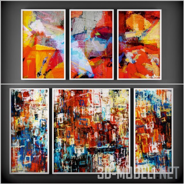 Семнадцать полотен с абстрактной современной живописью. Яркие цветные панно в стиле контемпорери. Некоторые из них можно использовать и поодиночке и в триптихах.