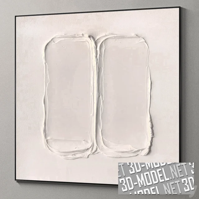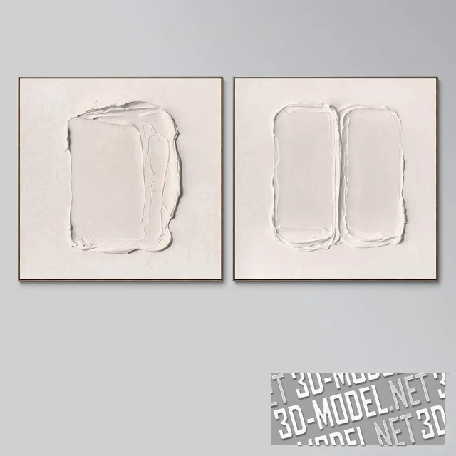 Абстрактное искусство является частым гостем в современных интерьерах, подчеркивая индивидуальность и динамизм пространства. Две фоторамки квадратного размера (100 x 100 см) с гипсовым изображением на холсте смотрятся очень выразительно и одновременно спокойно, что однозначно украсит обстановку. Сет содержит 2 модели и 5 материалов рамы (2 дерева и 3 металла).