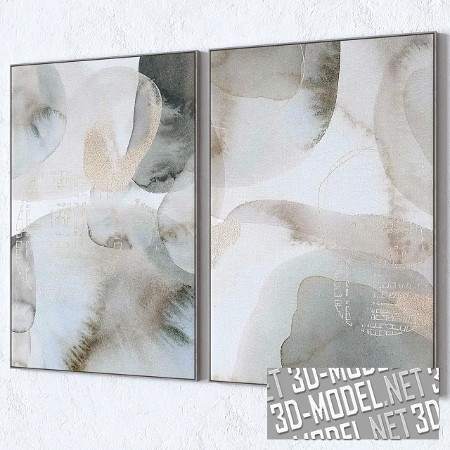 Комплект из настенной абстрактной росписи в рамах. Представленные четыре варианта цветов рамы (белый, черный, серое и бежевое дерево) позволяют гармонично вписать живопись в подходящий по стилистике и наполнению интерьер.