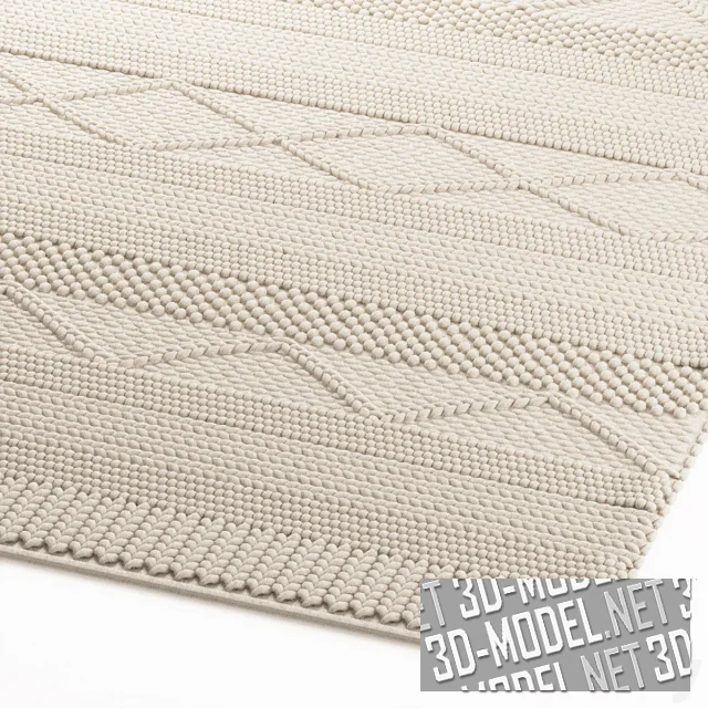 Прямоугольный ковер крупной вязки из небеленой шерсти - модель ALVA от BENUTA. Рельефный симметричный узор вязки выполнен в народном стиле, с полосками разного вида, ромбами и зигзагами. Габарит ковра: 120х170см.