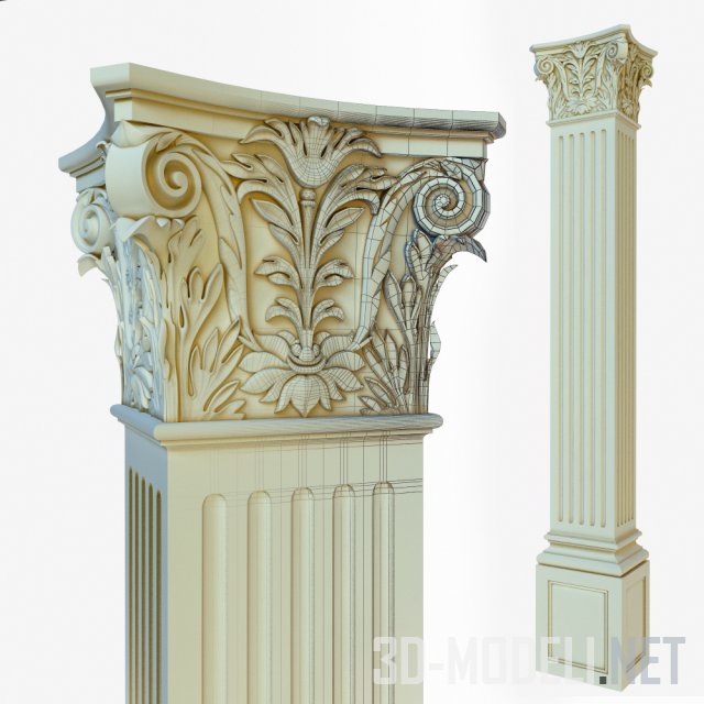 Декоративный элемент для интерьера в классическом стиле - коринфская колонна белого цвета. Реалистичная трехмерная модель, текстуры не требуются.