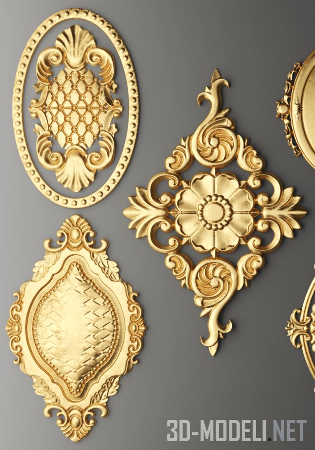 Изготовленная в классическом стиле ромбовидная, овальная и в виде цветка красивая золотая лепнина. Идеальный декоративный элемент для роскошного интерьера.