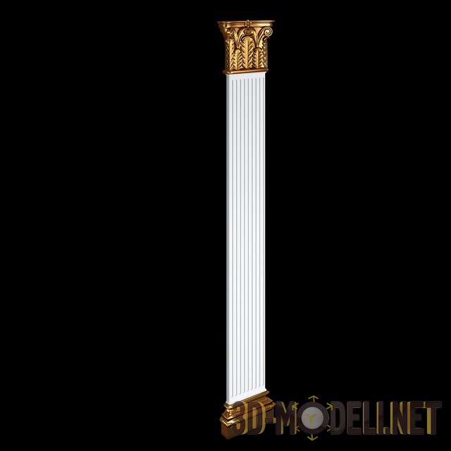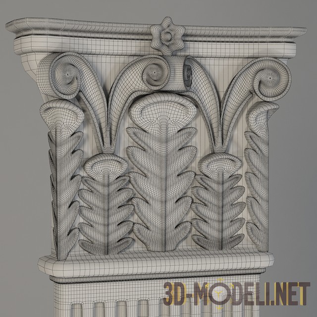 3D model classic column capital. Dimension: 306.27 x 370.4 x 2289.01 mm. Materials included. Formats – 3ds max 2011, render – V-Ray.