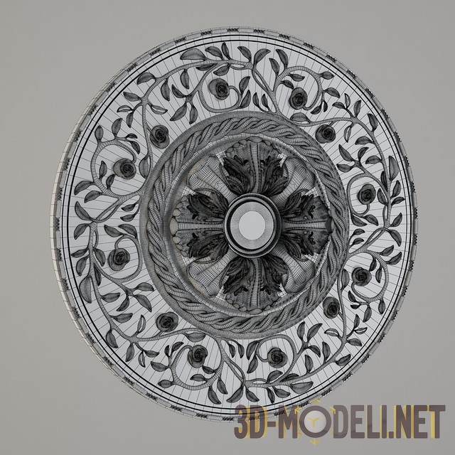 3D-модель потолочной розетки круглой формы. Традиционный вариант для декора интерьера в классическом стиле. Размеры: 57.5 x 660.03 x 660.1. Архив содержит 3Ds Max 2011 и obj.