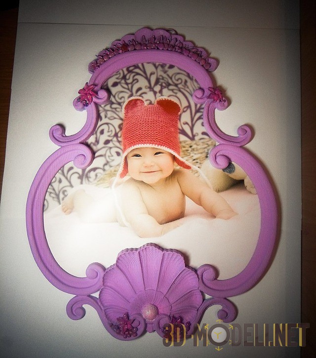 3D модель декоративной лепной рамки для фотографий в романтическом стиле. Отличается высокой детализацией сетки.