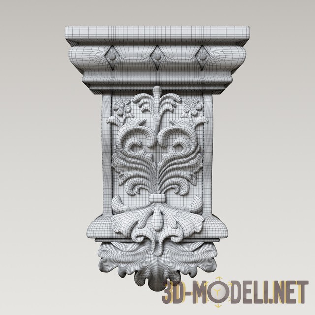 3D-модель элемента пилястры – капители. Лепной декор, данная часть которого используется в комбинации с базой и телом. Текстуры присутствуют.