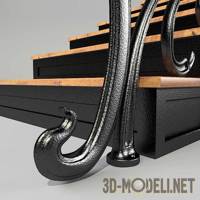 3D-модель лестницы с коваными перилами. Деревянная лестница с красивой ковкой на перилах является беспроигрышным вариантом лестничной конструкции практически для любого дома.