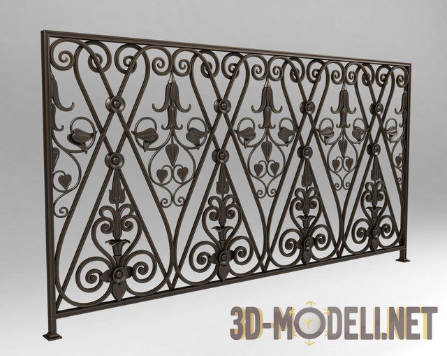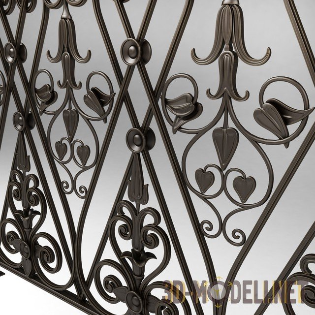 3D модель классических кованых перил. Изящная ковка решетки образует интересный узор, который будет актуален в классическом интерьере, но также способен украсить и внести неожиданное решение в более современные пространства.