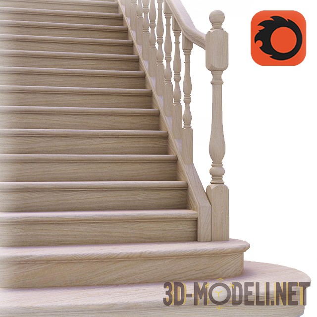 3D-модель классической деревянной лестницы на второй этаж, с закругленной ступенью. Простая и изящная модель, которая подойдет в большинство домов. Все текстуры, а также файл FBX присутствуют.
