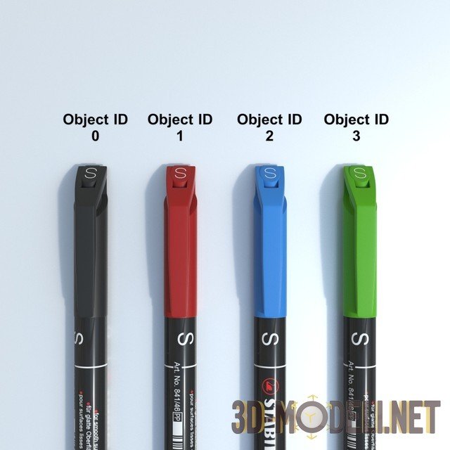 3D-модель набора маркеров STABILO OHPen. Универсальные перманентные маркеры, всегда нужны для придания реалистичности любому проекту, связанному с моделированием рабочей зоны. С текстурой.