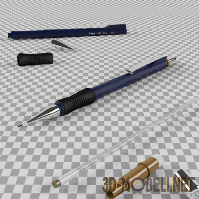 3D-модель автоматического карандаша KOH-I-NOOR MEPHISTO 0,5. Модель разбирается по элементам, текстуры есть.