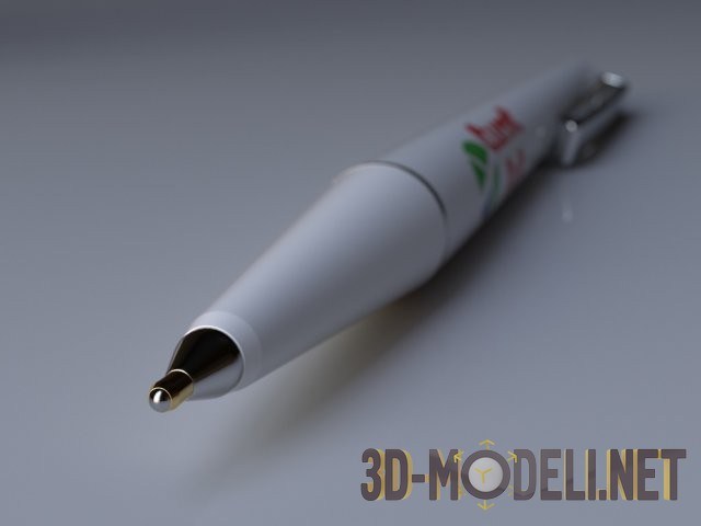 3d-модель шариковой авторучки белого цвета, с небольшим красно-зеленым рисунком на корпусе. В архиве файл 3ds max 2012 (Scanline), fbx и obj.