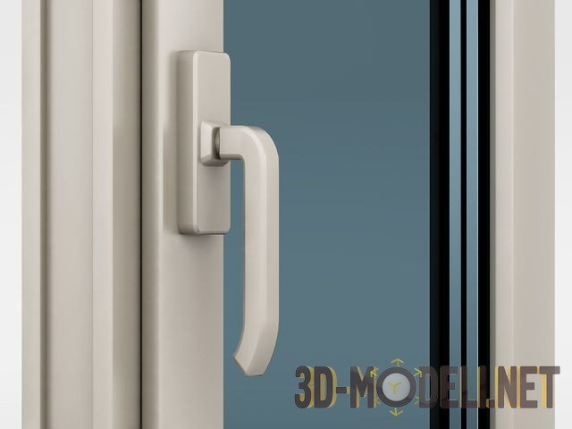 Одностворчатое белое металлопластиковое окно. Габариты рамы 61 см х 60 см. Стеклопакет тонированный, без перемычек и переплётов. Петли справа, стандартная белая ручка помещена слева.
