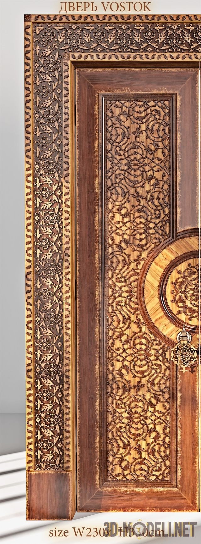Резная деревянная дверь для роскошного интерьера, с восточной направленностью: VOSTOK, 230 х 330 см. Выполненная в восточном (этническом) стиле, такая дверь будет хорошо выглядеть в соответствующем пространстве, внося в него характерные нотки стиля. Архив содержит версии для Corona 2014 и Vray 2011.