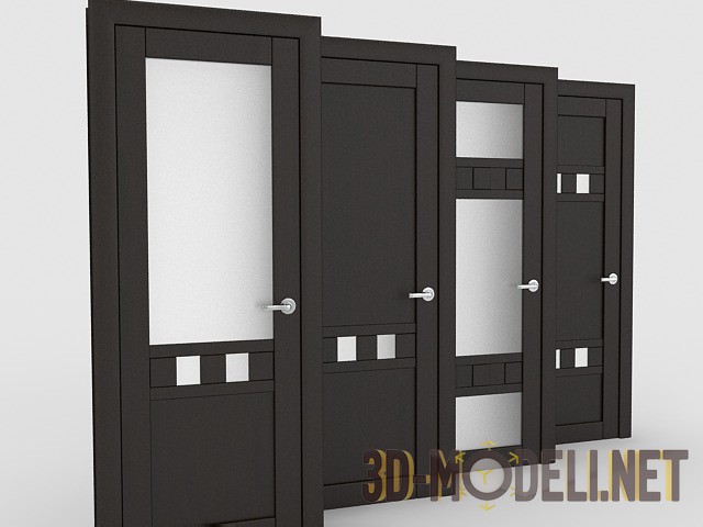 3d-модель набора современных дверей в отделке «Wenge». Несколько современных межкомнатных дверей, с разной степенью остекления - от небольших вставок до большой площади. Актуальная отделка «Wenge» делает эти двери еще привлекательней.