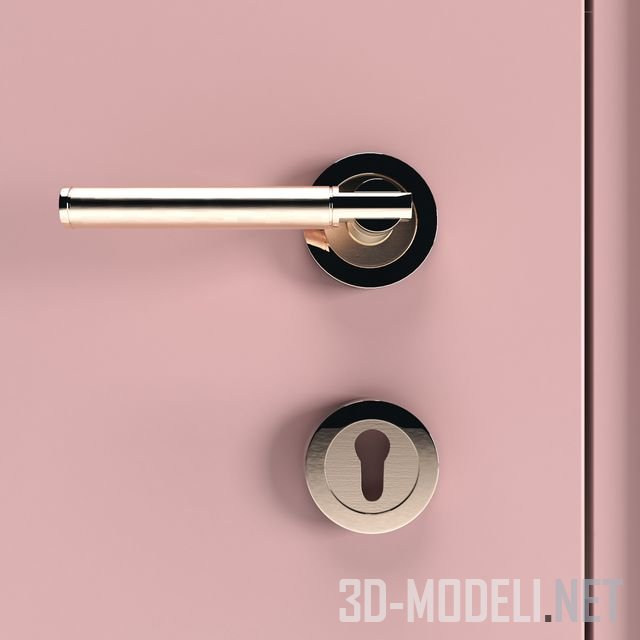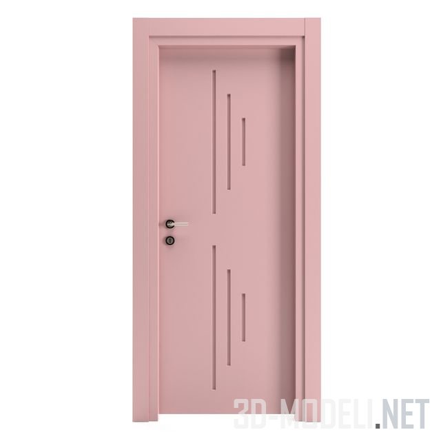 Современная межкомнатная дверь розового цвета, с ручкой. Модель с материалами и текстурами. Размеры: 2150 х 870 х 100.
