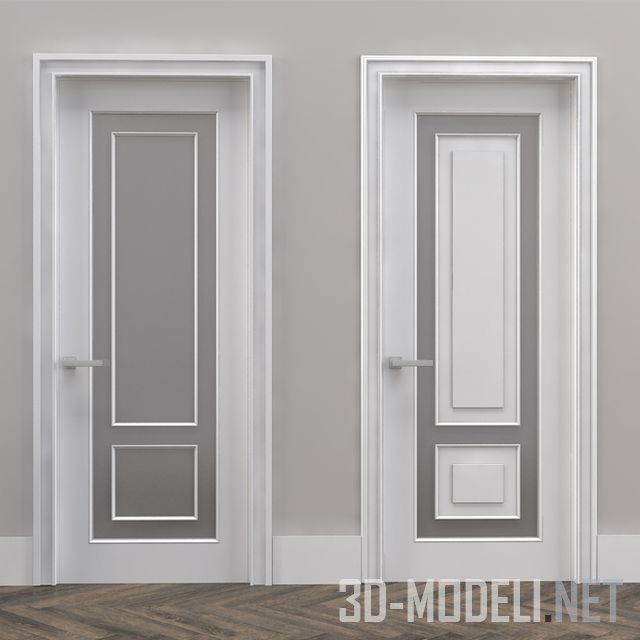 Небольшая коллекция изящных межкомнатных дверей в бело-серой отделке: Lontano от компании Portes. Полотна декорированы минималистичными филенчатыми панелями разных вариаций геометрии и сочетания белого и серого в отделке. Современная фурнитура - серебристого цвета.