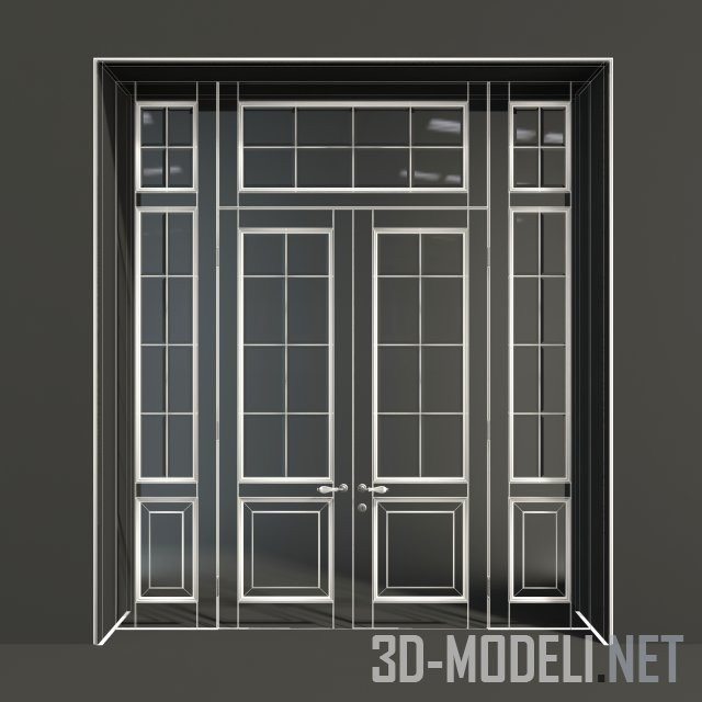 Классическая стеклянная дверь со стеклом, ручкой и с открытием (3200 х 3650 мм). Эта белая большая дверь как нельзя лучше подойдет к интерьеру большого особняка, выполненного в классическом стиле.