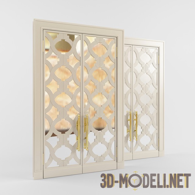 3d-модель распашных дверей, с декором из стекла и зеркала. Красивые двери, выполненные в классическом стиле, смотрятся очень элегантно и изысканно. Модель с текстурами.