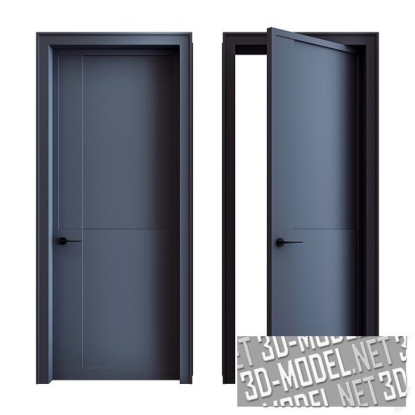 Три варианта цвета отделки современных межкомнатных дверей Art Line (бежевый, серо-зеленый и серо-синий). Полотно сформировано из прямоугольников в разных уровнях, что создает лаконичный и эстетичный дизайн двери. Черная ручка в минималистичном стиле отлично сочетается с представленными цветами отделки блока.