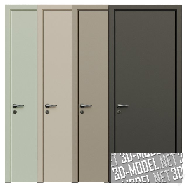 Различные варианты межкомнатных дверей для современного интерьера. В архиве предложено четыре цветовых вариации: черный, горчичный, бежевый и оливковый. Помимо оригинальных цветов предложены сплошная гладкая, стеклянная с обрамлением и рифленая отделки. Благодаря большой вариативности продукт можно адаптировать под различные проекты, в соответствии с дизайном интерьера, декора и др.