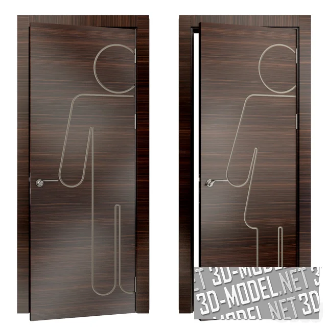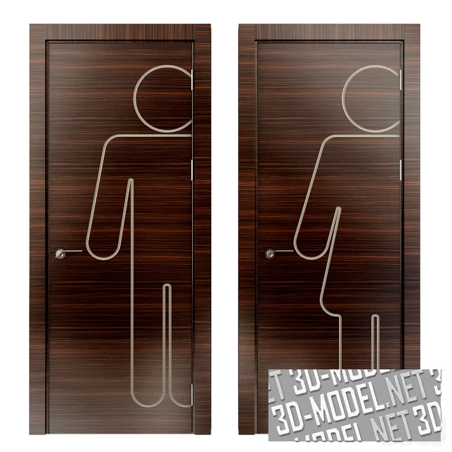 Современные двери для входа в женский и мужской общественный туалет. В превью представлено два варианта отделки. Коричневый и серый цвета смотрятся реалистично.