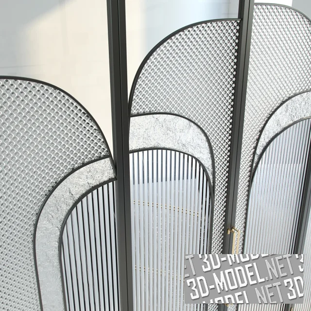 Стеклянная перегородка для интерьера, с дверями в центральной части. Фактурное стекло смотрится очень оригинально и стильно, и создает интересный эффект. Высокого качества 3d-модель. Настроенные материалы Corona и необходимые текстуры находятся в архиве.