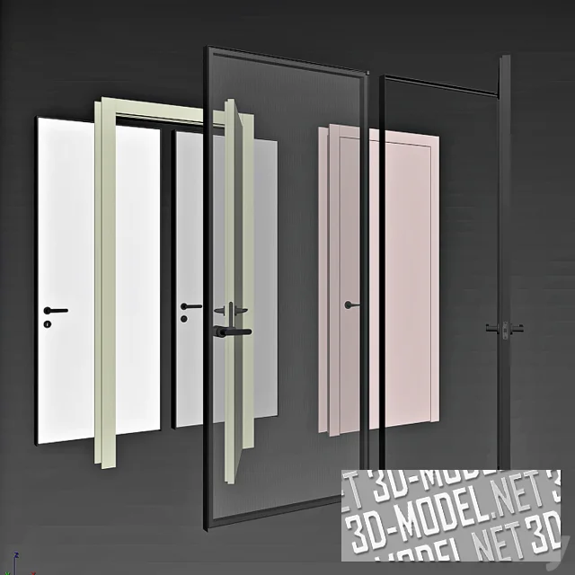 Межкомнатные двери в современном минималистичном стиле. В коллекции четыре модели с разным наполнением полотен: сплошное, сплошное с прозрачной вставкой, сплошное со скрытой коробкой, с наполнением из гофрированного стекла. Модели представлены в приятных цветах: светлая пыльная роза, бледный серо-голубой, бледный фисташковый, белый матовый. Фурнитура - черный глянцевый металл.