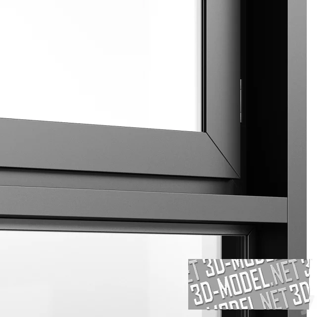 Небольшая коллекция современных панорамных окон с серыми рамами. Представлено четыре модели двух типоразмеров (одинарные и двойные, с фрамугами и без). Одна из створок в каждом варианте - открывающаяся.