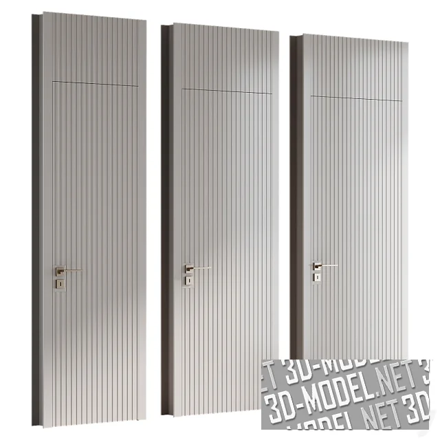 Современные дверные блоки Venus от Academy, в высокий проем. Наружная плоскость двери и верхняя часть декорированы вертикальными канавками. Представлено три ширины дверей: 60, 70 и 80см. Двери укомплектованы минималистичными современными ручками и замками Giro Zincral от lineacali.