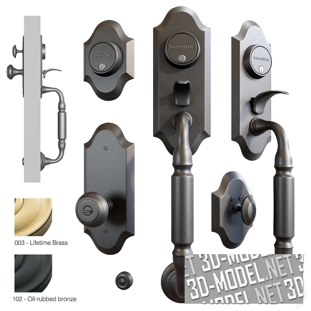 Классический двухточечный дверной замок Ashton от Baldwin с ручкой 5210 из кованой латуни для металлических или деревянных дверей. На круглых панелях выбито название производителя. В комплекте замки с одинарным и двойным цилиндром и полный комплект с ручкой-скобой.