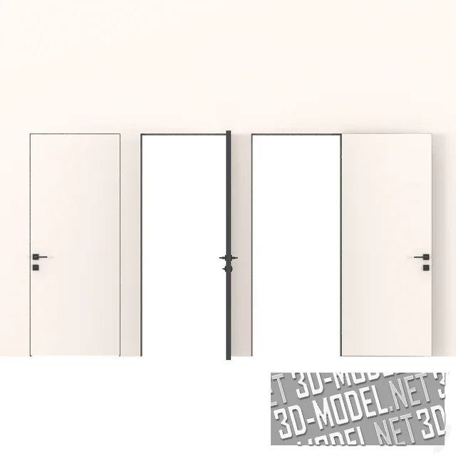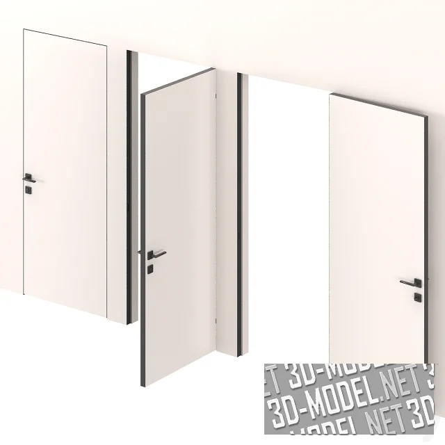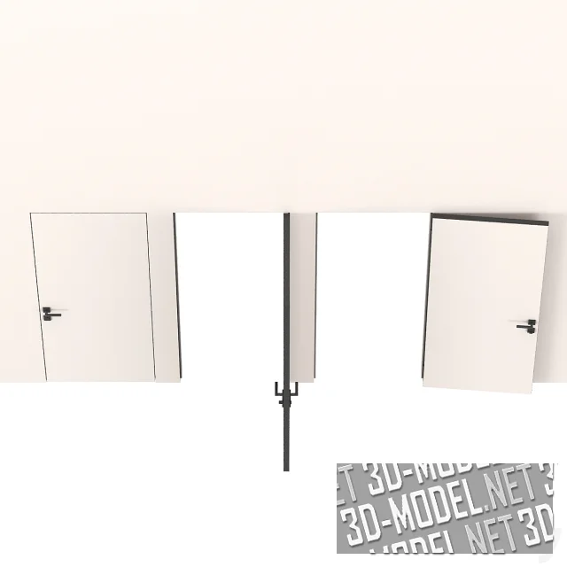 Современные минималистичные двери скрытого монтажа - Papa Carlo Prime iDoors. Полотна представлены в белом цвете с черной минималистичной фурнитурой, в трех типоразмерах: 200х61см, 200х71см, 200х81см, для проемов: 206х70см, 206х80см, 206х90см соответственно. Фурнитура: скрытые петли Anselmi, дверная ручка AJAX POLO JK BL-24, поворотная ручка AJAX BK6 JK.