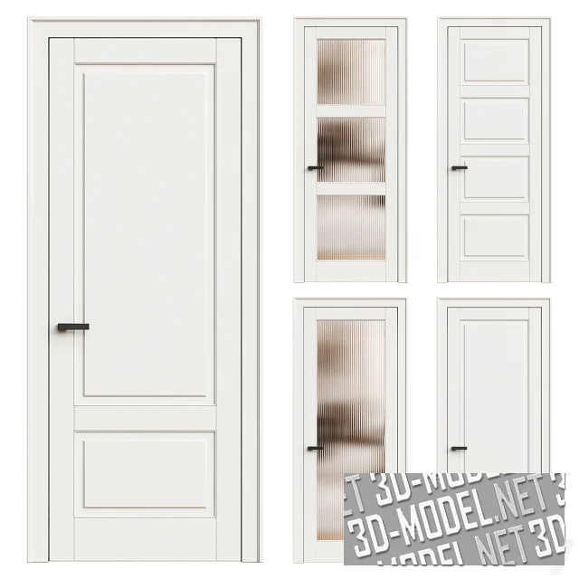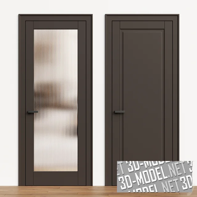 Небольшая коллекция современных межкомнатных дверей в минималистичном стиле от Novadvery. Представлено пять моделей (с филенками, сплошные и с вставками из рифленого стекла) в пяти цветах (темно-оливковом, белом, темно-коричневом, сером, кремовом). Габарит дверей: 95х15х220см. Минималистичные ручки графитово-серые.