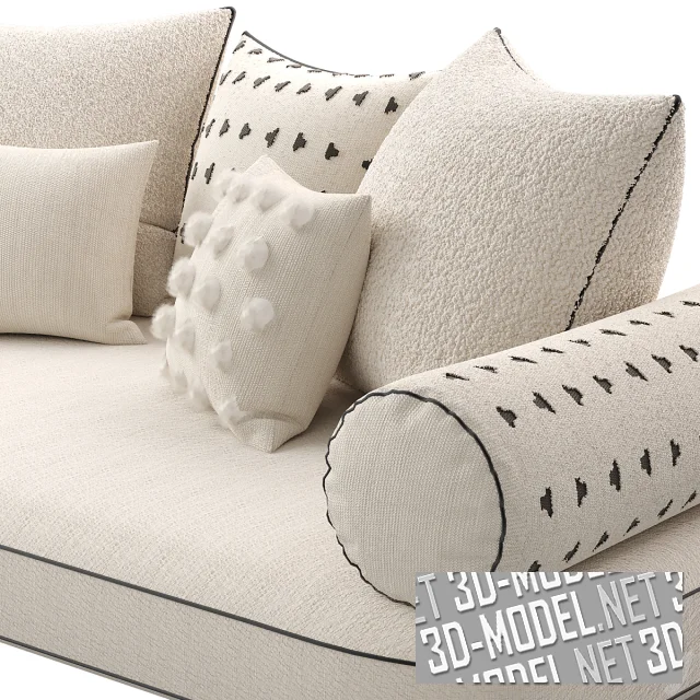 Набор мягких декоративных подушек в светлом цвете. Основная отделка выполнена из плотной текстильной ткани с легкой фактурой, а контрастный кант подчеркивает форму. В комплекте подушки с вышивкой, с текстурой букле, с крупными объемными помпонами, в классической гладкой наволочке. Валикообразные подлокотники создают уютный силуэт и дополняют мягкую посадку.