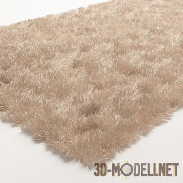 Прямоугольный ковер с длинным бежевым ворсом