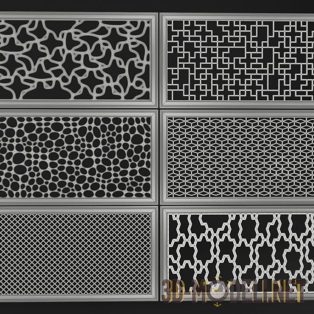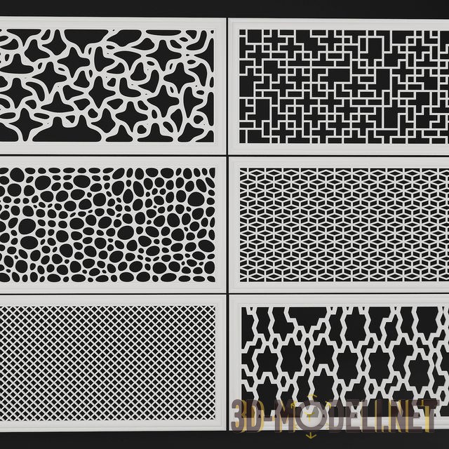 Набор современных ажурных панелей с разными вариантами узора на поверхности. Можно использовать таки панели в самых разных вариантах: в качестве декоративных элементов в интерьере, каких-либо решеток, стеновых панелей или разделительных ширм.