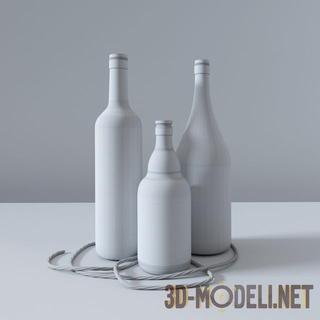 Набор декоративных бутылок. Три разновысокие бутылки декорированы супрематическими линиями. Молочно-белый и глубокий тёмно-синий цвета гармонично сочетаются друг с другом. Небольшая витая верёвка из льна дополняет композицию. Установленные на полку или стол, эти декоративные элементы добавят романтическую морскую нотку в современный интерьер.