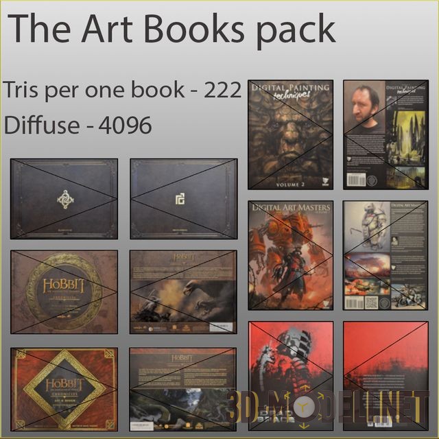 Стопка стоящих книг. Подборка хорошо подойдет для наполнения интерьера комнаты подростка или молодого мужчины, так как включает в себя реалистично исполненные произведения Толкиена, книги по цифровому дизайну и фантастику.