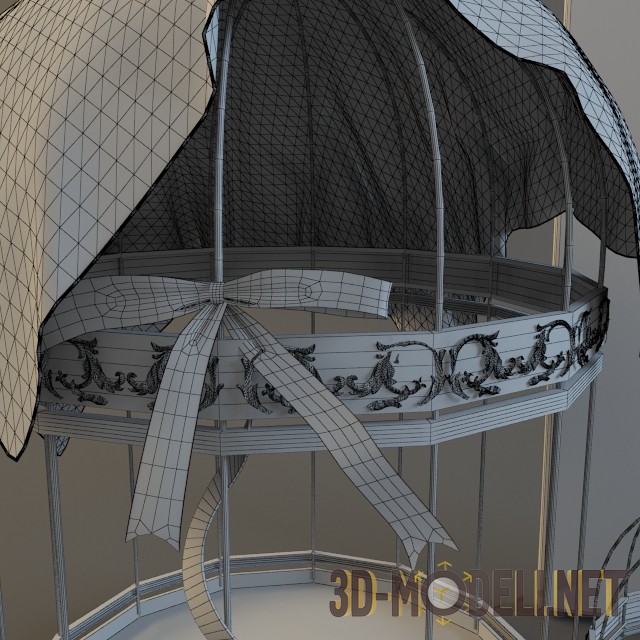 Романтичный набор из нескольких предметов для украшения интерьера. Две разновеликие белые клетки для птиц классической круглой формы с куполом. Ободы клеток украшены барельефом с растительным мотивом, фиалковой ленточкой и накрыты платком в бело–бежевую клетку. Также в композиции учавствуют: вертикальная фотография лошади в поле с фиолетовыми люпинами, маленькая горизонтальная открытка в белой рамке с бело–фиолетовыми цветами и ромашка, лежащая на многостраничном журнале.