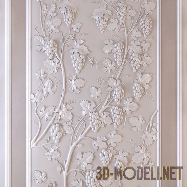 Изысканное панно в классическом стиле, с изображением виноградных лоз. Панель станет прекрасным украшением элегантного интерьера. Модель предназначена для изготовления декоративной панели из гипса, которая может быть использована для украшения ресторана, кафе, гостиной, спальни и других помещений. Размеры панели: 800 x 1900. В архиве содержится только модель панели с виноградом. Для примера показан образец в интерьере ресторана.