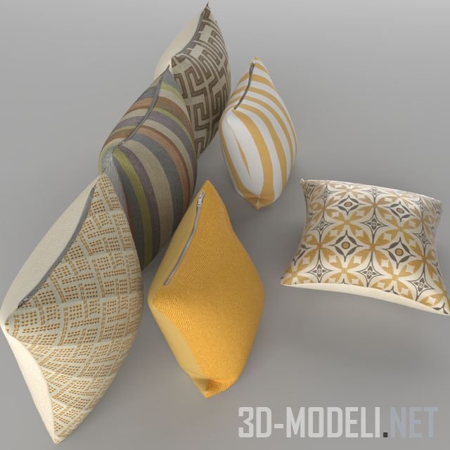 Декоративные подушки различной расцветки, преимущественно в оранжево-бежевых и коричневых оттенках. Подойдут для современного, этнического интерьера. Производитель: Crate&Barrel.