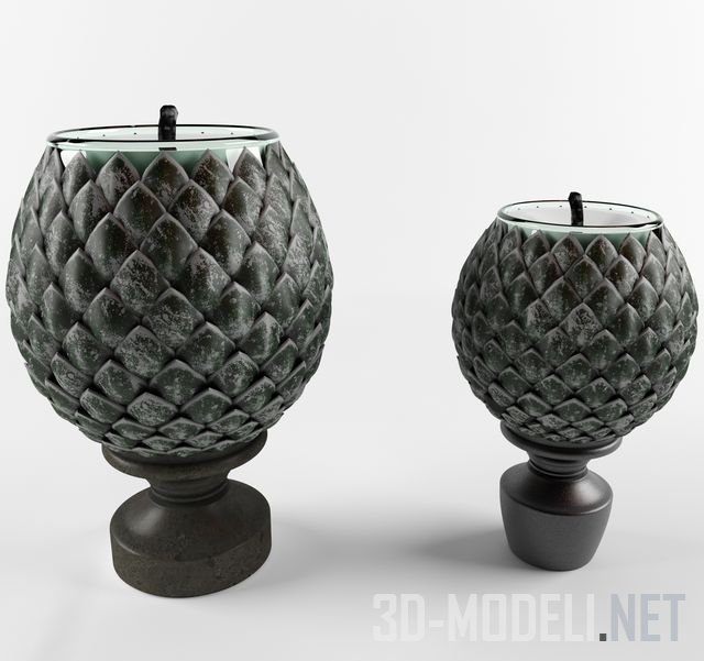 Реалистичная 3d модель для декора интерьера – подсвечник в форме шишки. Предусмотрено два варианта основания подсвечника. Модель с текстурами в архиве.