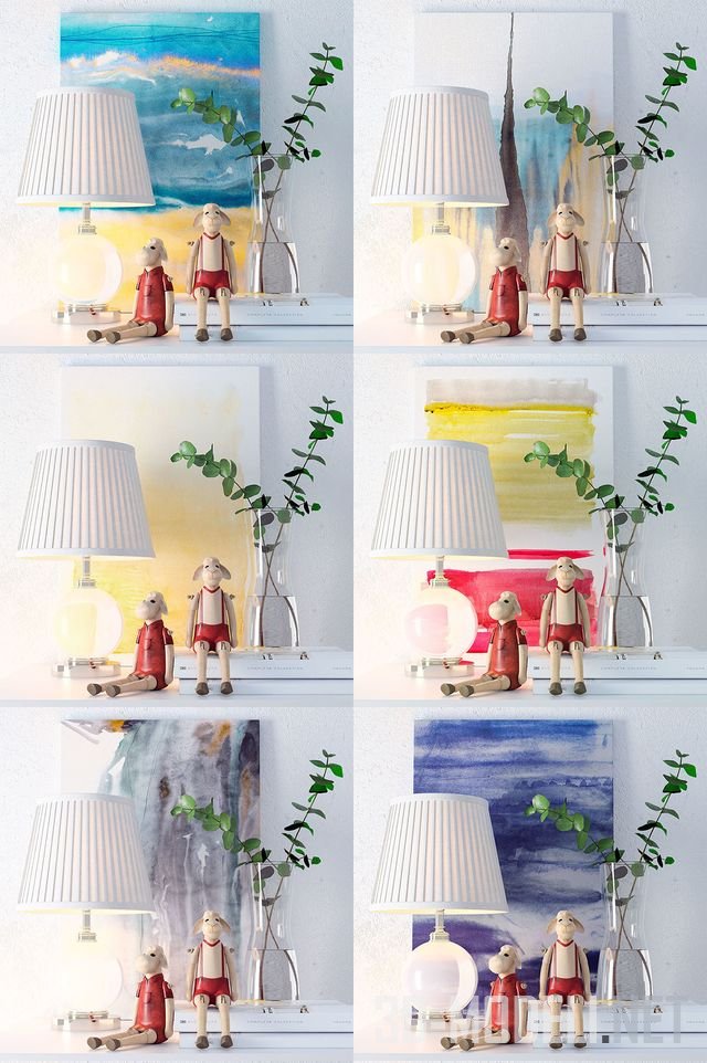Настольная лампа Eichholtz Octavia составляет основу набора интерьерных предметов, в который также входит ваза Тидваттен производства IKEA, картины Jan Ombre и набор фигурок «Барашки» от Dantone Home.