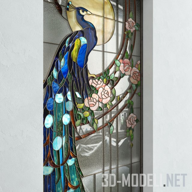 Настоящим украшением подходящего по стилистике интерьера станет этот роскошный цветной витраж, изображающий павлина, цветы, солнце. Детально проработанная модель со всеми текстурами.