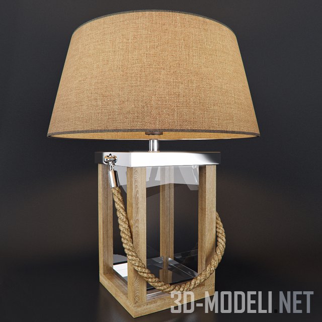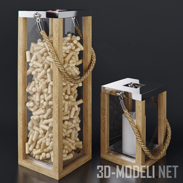 Набор декоративных предметов, объединенных одинаковыми стилистическими элементами, деревом и веревками. Предметы серии Tate Collection. от Arteriors. В наборе лампа, подсвечник и емкость с декоративными белыми пробками.