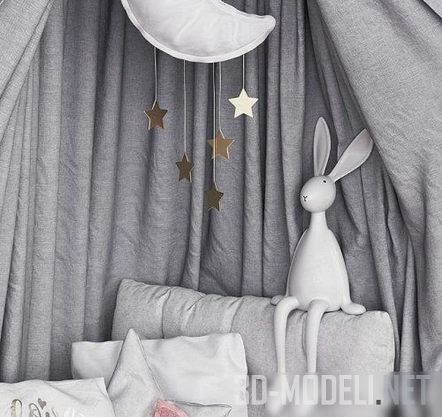 балдахин, заяц, подушка, звезда, детский