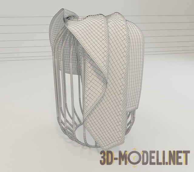 3D-модель декоративного элемента для интерьеров: кусок ткани, небрежно наброшенной на металлический каркас. Качественный объект с корректной сеткой и реальными размерами и пропорциями.