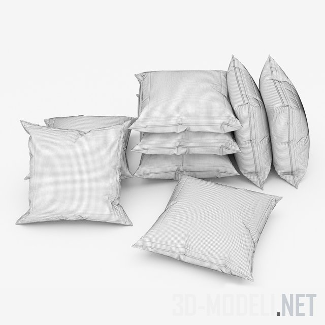 Стопки достаточно больших подушек разного цвета: в наборе зеленые, красные, бордовые, синие, серые. Такие подушки можно использовать как дополнительный элемент интерьера на диване, на полу или ковре.